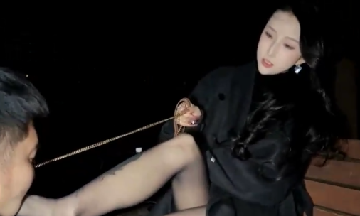 情侣奴被高贵辣妹当清理鞋底汗脚工具使用